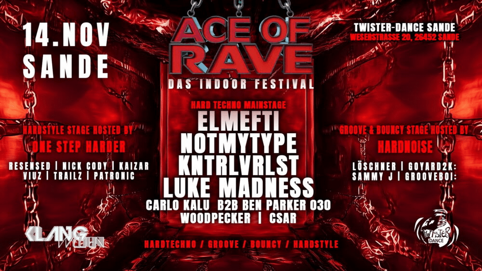 Kategorien Sande PartyAce Of Rave – Das Indoor Festival14.11.2025Twister Dance22:00 UhrEintritt: ab 27 €