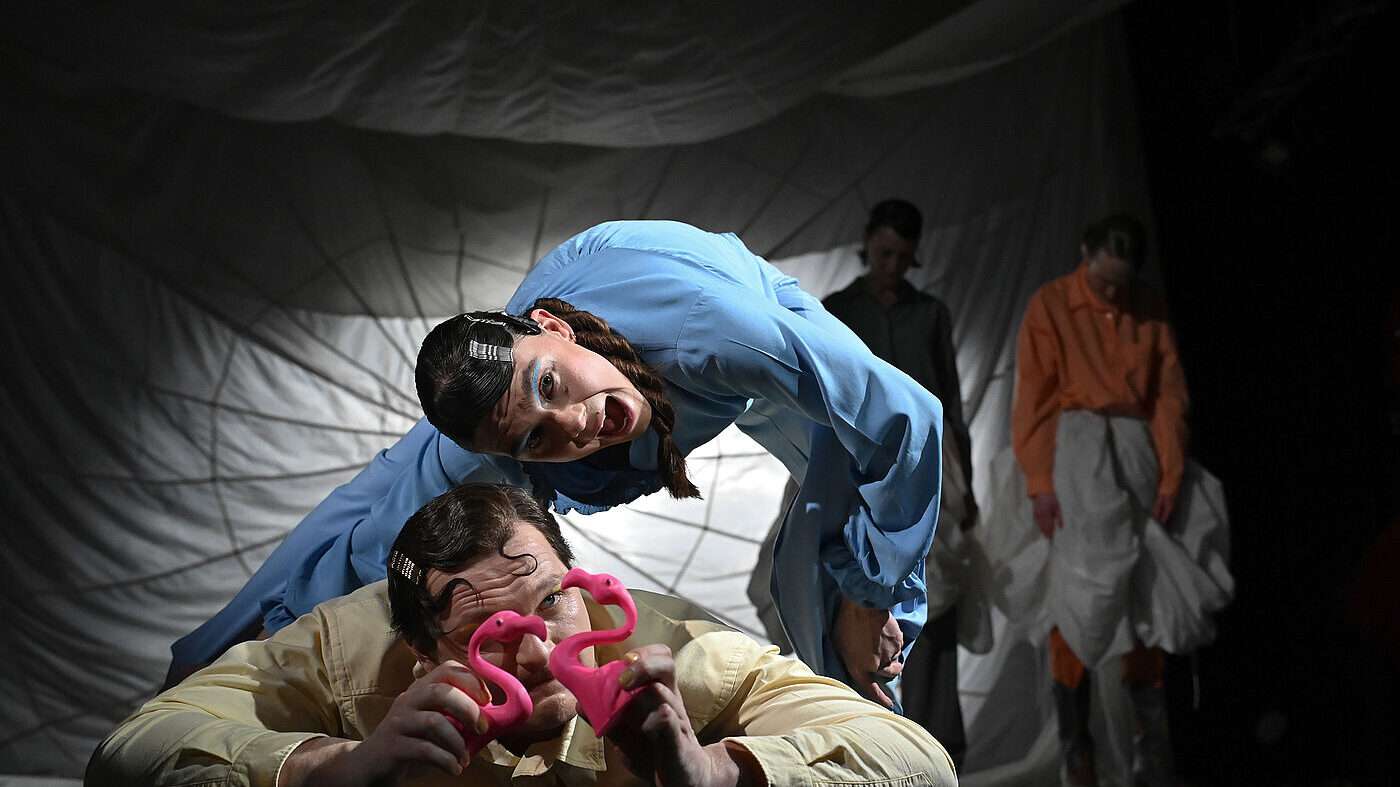 Das Stück beginnt mit einer Frechheit: Im Vorwort behauptet die Autorin, Bookpink sei plattdeutsch für Buchfink. Dass das schlichtweg nicht stimmt, setzt den Ton für alles, was danach kommt. Nämlich ein Stück, in dem die Figuren «Dreckspfau» heißen oder «Die Unterstützung» und die Sumpfmeise sich jetzt Veroniko nennt und sich nicht mehr die Beine rasieren will. Spätestens jetzt ahnen die geübten wie ungeübten Theatergänger:innen, dass hier mit den Erwartungen an das Theatererlebnis gespielt wird. In Caren Jeß’ «dramatischem Kompendium» kommen die ansonsten wortlosen Vögel zu Wort und beschwören die Abgründe und Visionen unserer verwirrenden Gegenwart. In sechs kunstvollen und herrlich angeschrägten Miniaturen seziert die Autorin die Zumutungen unserer zunehmend fragmentierten und dauernd erregten Gesellschaft.