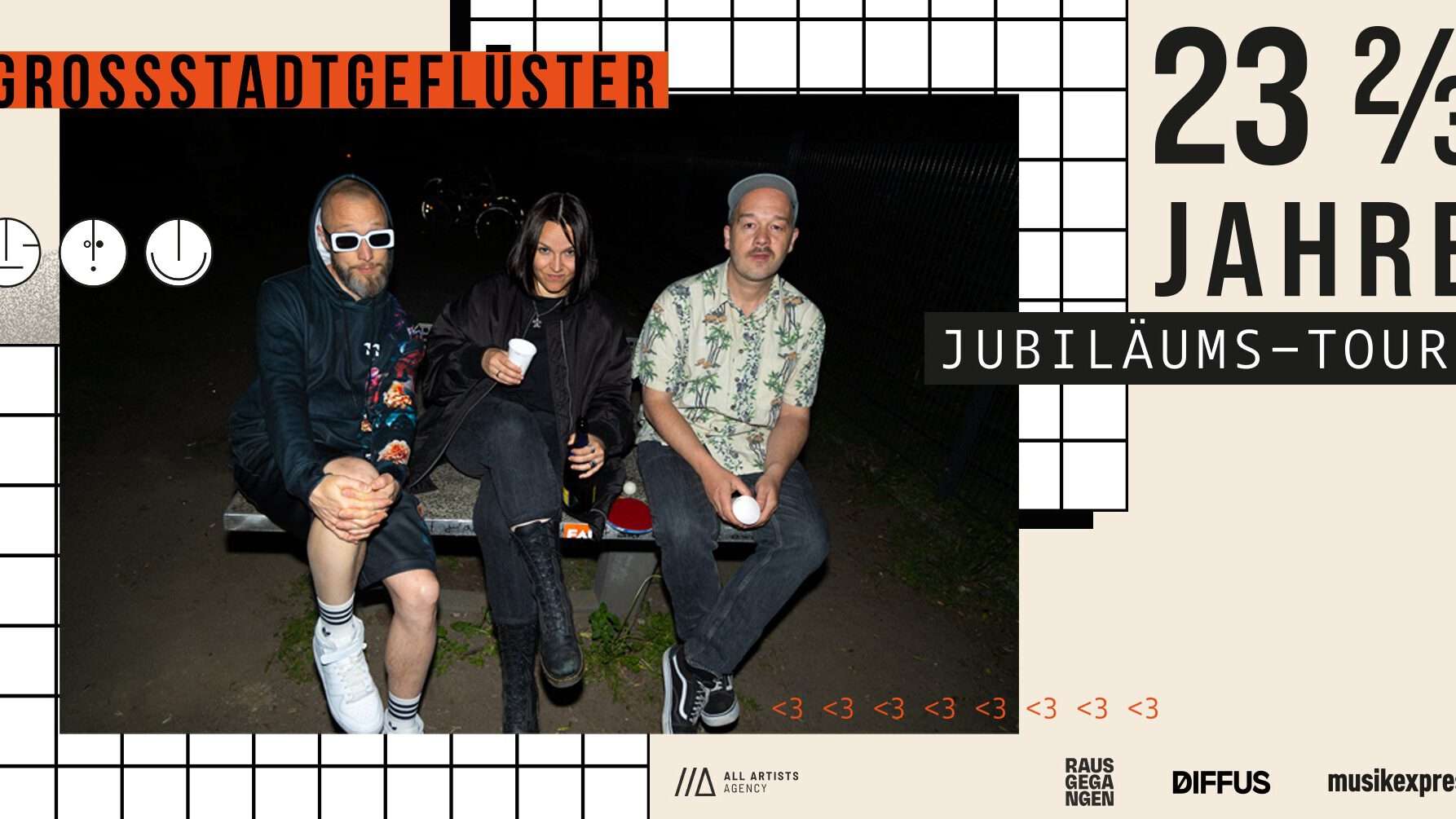 Grossstadtgeflüster bezeichnen sich mittlerweile nicht mehr als Band, sondern als Aggregatzustand. Seit über zwei Dekaden bewegt sich dieser zwischen Rummelbums-Rave und radikalem Realismus – mit Berliner Schnauze und dennoch liebevollem Blick fürs Abseitige.