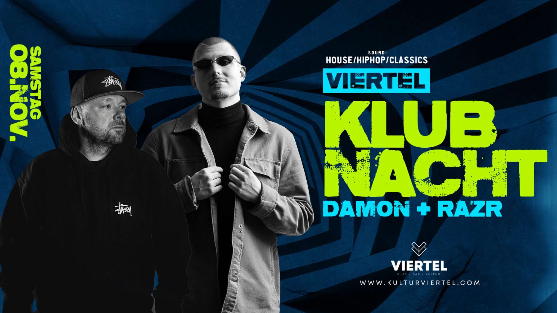 Damon & Razr liefern euch bei der Klubnacht die perfekte Mischung aus Open Format, House, Hip Hop & Club-Classics. Tanzt, vibed und feiert, bis die Sonne aufgeht.