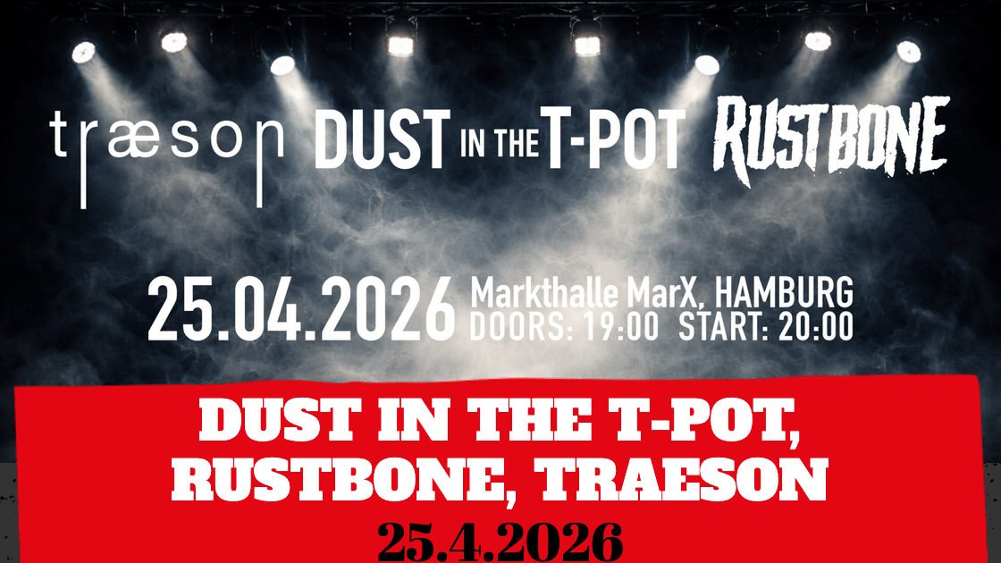 Kategorien Hamburg MusikDust In The T-Pot, Rustbone, Traeson25.04.2026Markthalle20:00 UhrEintritt: 13,90 €
